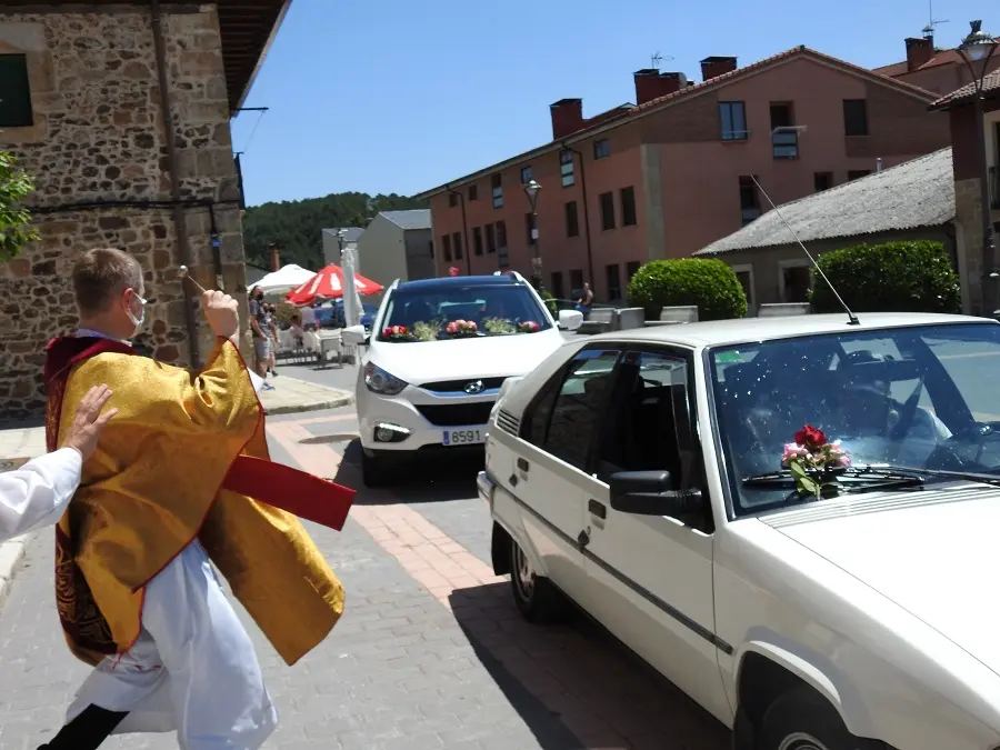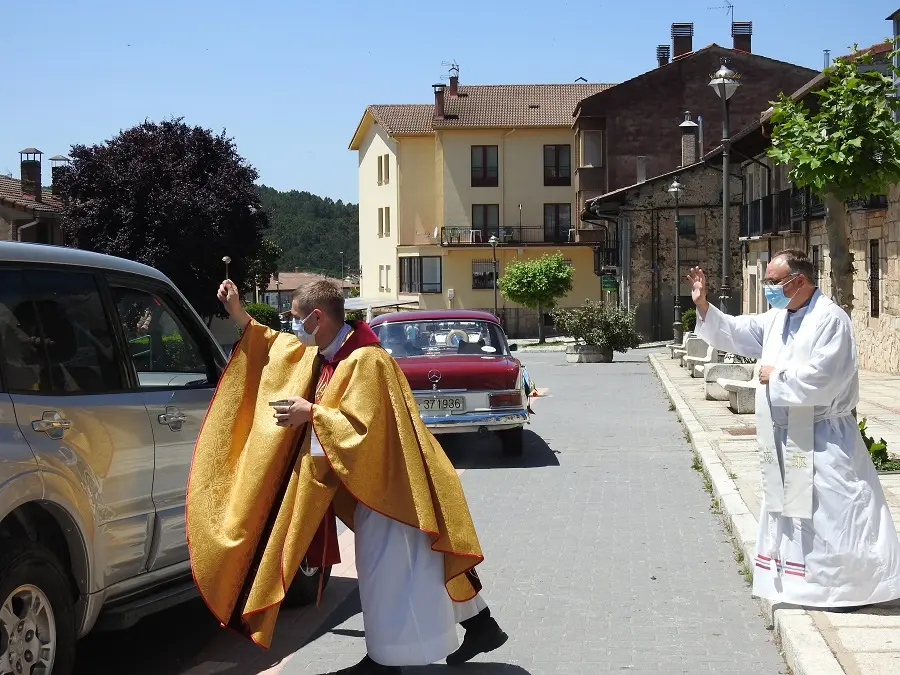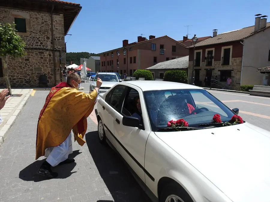 La bendición de los vehículos se ha realizado por los párrocos en la plaza de Navaleno.