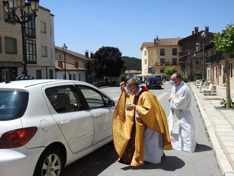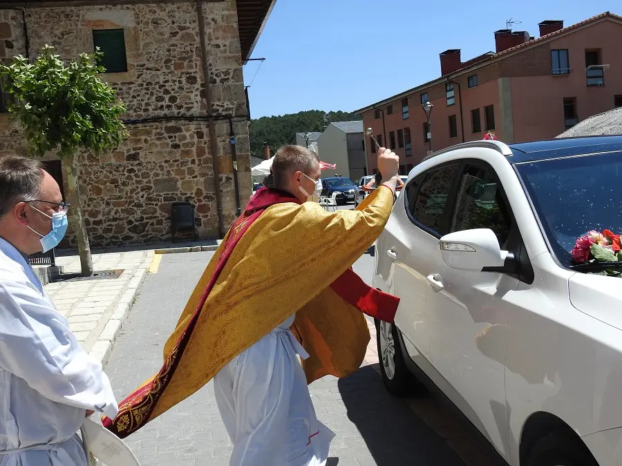 La coincidencia con el sábado de la jornada del 10 de julio ha permitido que más conductores se unieran a la procesión, tras la ceremonia eucarística en la iglesia parroquial de San Esteban Protomártir.