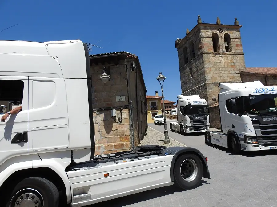 En el recorrido han participado parte de la flota de camiones de las empresas JL. López y Jalopa, con un recuerdo especial a José López, fallecido esta primavera, y dedicado durante décadas al sector del transporte.