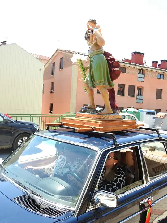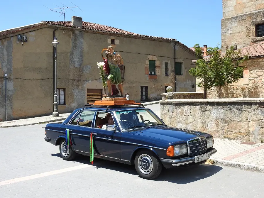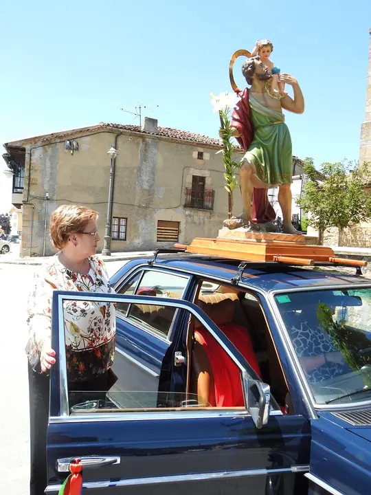 La imagen de San Cristóbal ha sido portada en uno de los coches 'clásicos' de la familia Alcázar Pascuas.