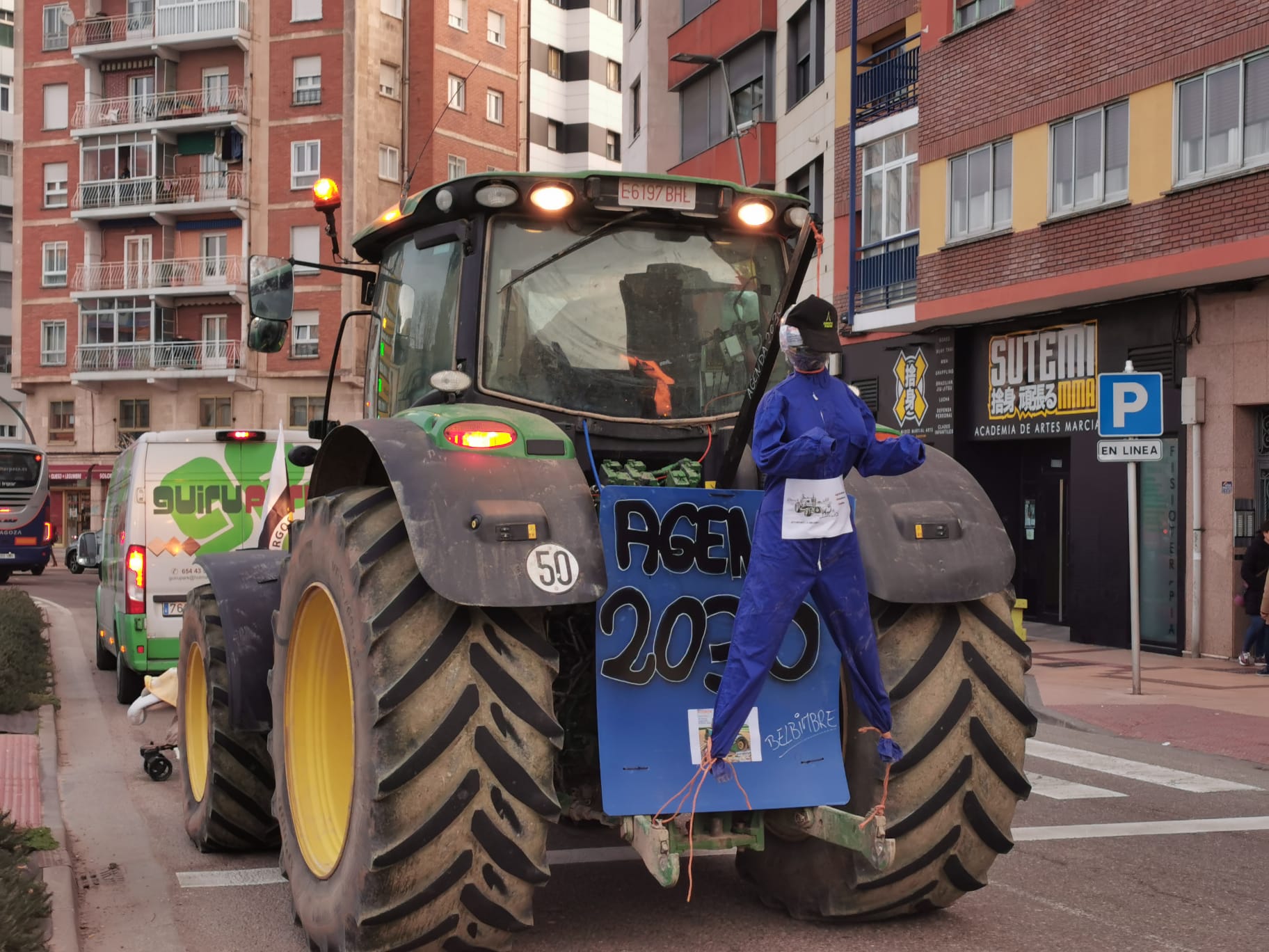 Con lemas como 'SOS al Campo', consignas contra la Agenda 2030 y 'Sin agricultura no hay cerveza' los agricultores con sus tractores han marchado durante toda la mañana por la ciudad creando un auténtico caos circulatorio. La marcha se ha organizado para “pelear y ser escuchados ante la nueva PAC y las nuevas leyes aprobadas para el cumplimiento de la Agenda 2030, que nos están asfixiando, y en algunos casos nos resulta imposible de llevar a cabo con nuestros medios, además de una enorme carga burocrática”, aseguran a través de un comunicado realizado por la Agrupación Nacional de Agricultores y Ganaderos del sector primario.
