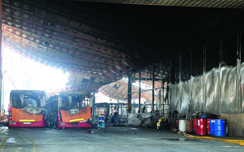 Un incendio en las cocheras municipales calcina más de la mitad de los buses urbanos