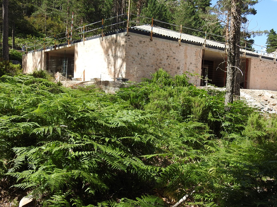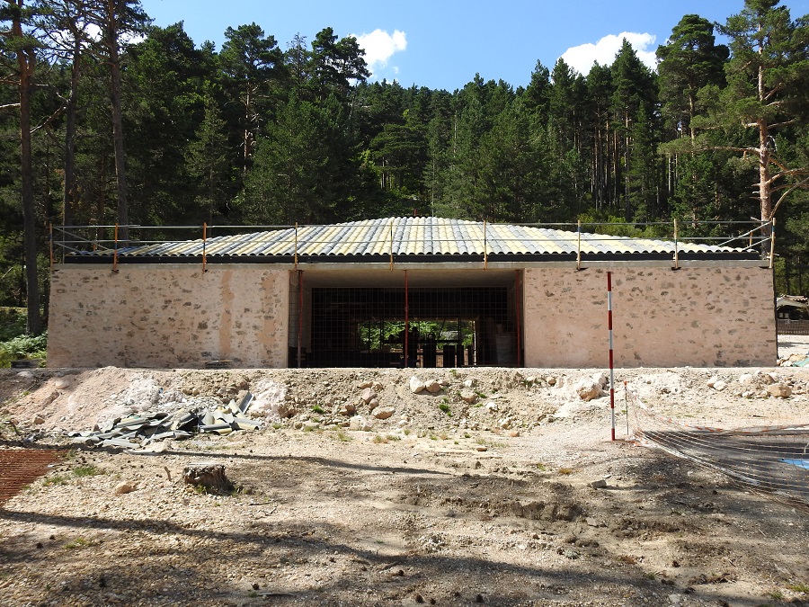 Las intervenciones se realizan en una parcela anexa a la pista de subida a La Laguna, y junto al nuevo aparcamiento de El Paso de la Serrá. El edificio es de una sola planta, de estructura cuadrada de 18 metros de lado (324 metros cuadrados) y con cubierta a cuatro aguas, que se presenta en el paisaje como una arquitectura natural, hundiendo sus raíces en la tradición constructiva de la arquitectura popular de parte de la comarca de Pinares.