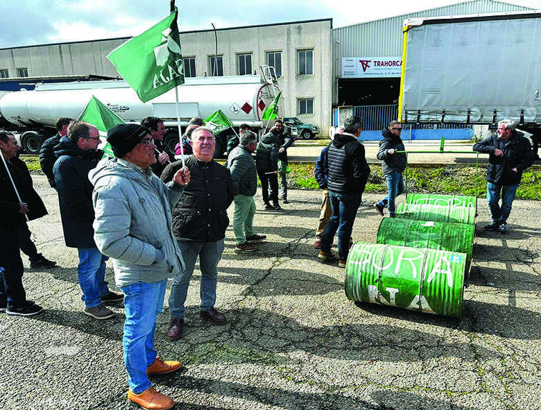 Los primeros en salir a la calle han sido los agricultores y ganaderos. Las organizaciones agrarias ASAJA, la Alianza Upa-Coag y Uccl bloqueaban el martes 10 de marzo el centro logístico de hidrocarburos Exolum (CLH) de Santovenia de Pisuerga, en Valladolid, con un millar de personas en protesta por la paralización del suministro de carburante agrícola y la amenaza de subidas especulativas de precios en un momento crítico para la actividad agraria de Castilla y León.