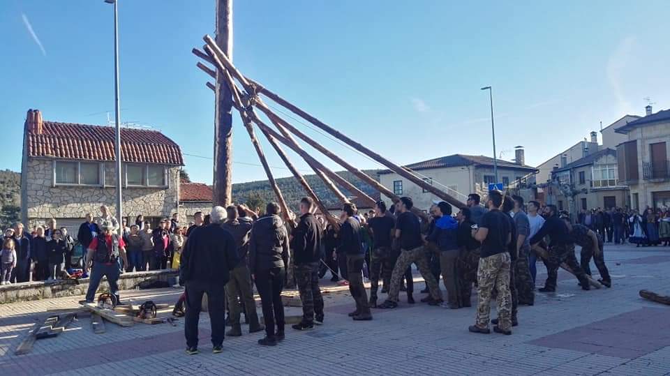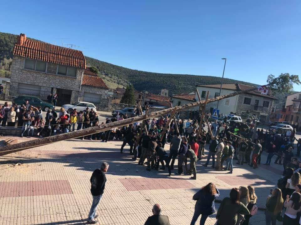 Otra de las cosas que lo hacen especial, aunque se mantiene en más pueblos, es que se pinga exclusivamente con tijera, unas varas de pino atadas en cruz, aprovechando la fuerza bruta de sus mozos que empujando al unísono dirigidos por uno de ellos, logran izar el pino en un acto de comunidad que requiere la coordinación y el esfuerzo de todos.
