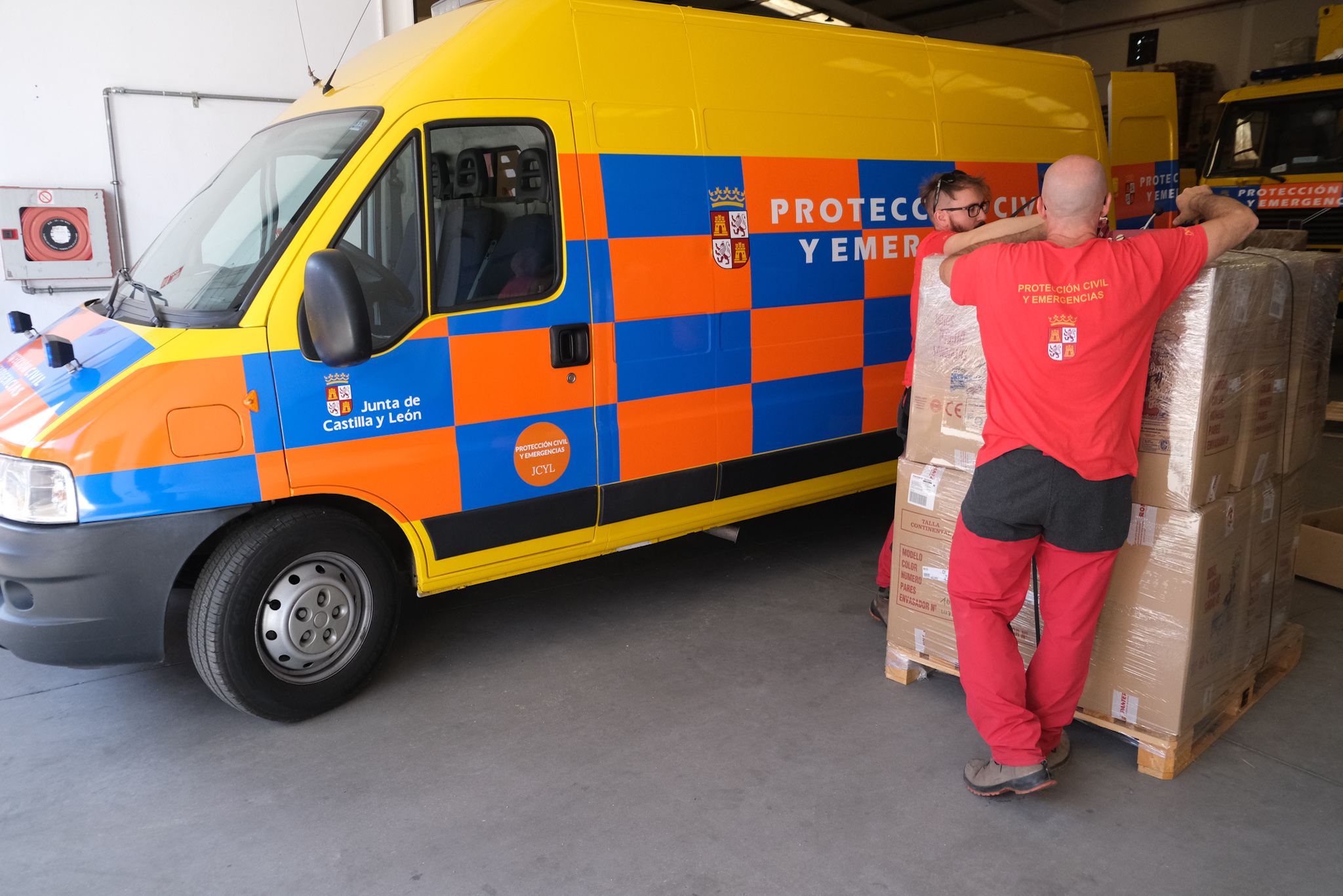 En concreto, desde la Agencia de Protección Civil y Emergencias de la Junta de Castilla y León se envía tres trailers con doce mil kilos de material, agua y alimentos, 71 motobombas, 14.000 kit de higiene, 900 unidades de instrumental de limpieza, 500 palas, 2.000 pares de botas de agua y 15 profesionales, de los cuales 12 son técnicos que constituyen el Centro de Coordinación de Emergencias. Además, este material irá acompañado por un convoy de trabajo formado por un puesto de mando avanzado, tres furgones de material de intervención y operadores de la Unidad de Apoyo logístico en Emergencias, 10 camiones de carga general, 13 retropalas y 10 góndolas.