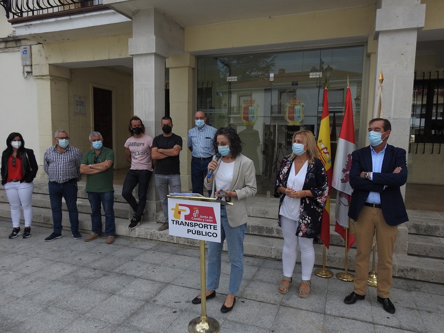 La delegada territorial de la Junta de Castilla y León en Soria, Yolanda de Gregorio, ha presentado esta mañana en la localidad de San Leonardo de Yagüe el Bono Rural de Transporte Gratuito que está implantando progresivamente la Junta de Castilla y León y que en esta zona de la provincia soriana dará servicio a 23 localidades, organizadas en seis rutas. Se suma así a las zonas de Arcos de Jalón, donde se inició en el mes de junio, y Gómara, en la que comenzó el pasado día 14 de julio.