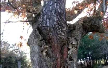 La naturaleza hizo que en el interior del hueco del roble pudiera germinar una semilla de pino y crecer hasta convertirse en un majestuoso pino albar