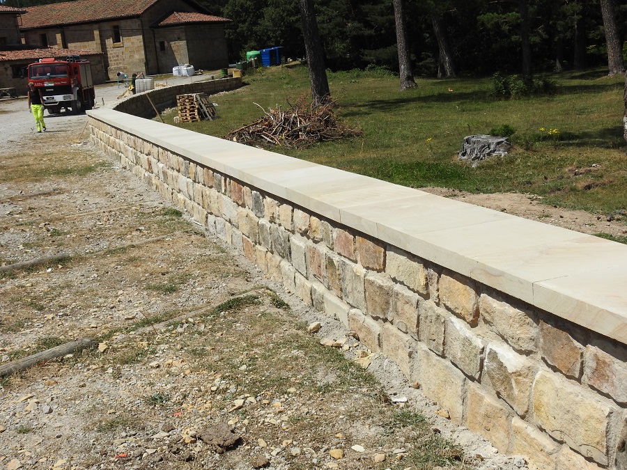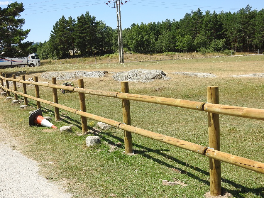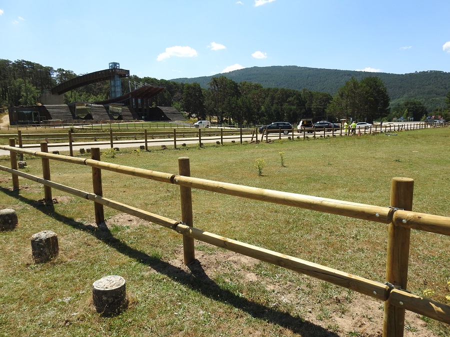 Además del vallado de madera se ha construido un muro de piedra que permite delimitar la pista interior con la zona del merendero y tiene distintas funciones, entre otra servir de asiento para el reposo en la visita al paraje.