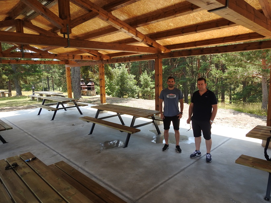 Construido con cerchas y vigas de madera de calidad, con base de cemento y mesas de madera, el nuevo merendero va a permitir usar el paraje en otras épocas del año, además del verano, y hacerlo en un horario más extendido, como confirman los concejales Felipe Chicote y Miguel De María. El coste económico asciende a 30.000 euros.
