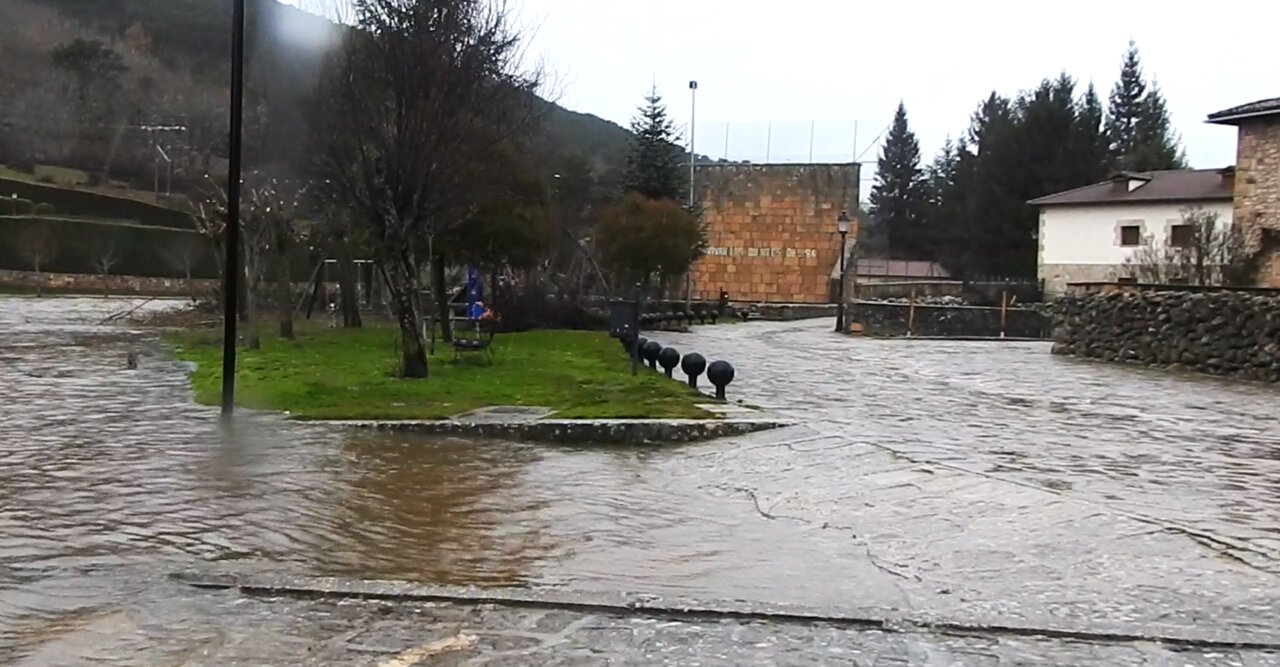 Uno de los vecinos observa el cauce. "Esto en una hora está en mitad de la plaza". Y así ha sido. El agua ha vuelto a invadir la `plaza central de Salduero, ubicada junto al puente que cruza el río Duero.