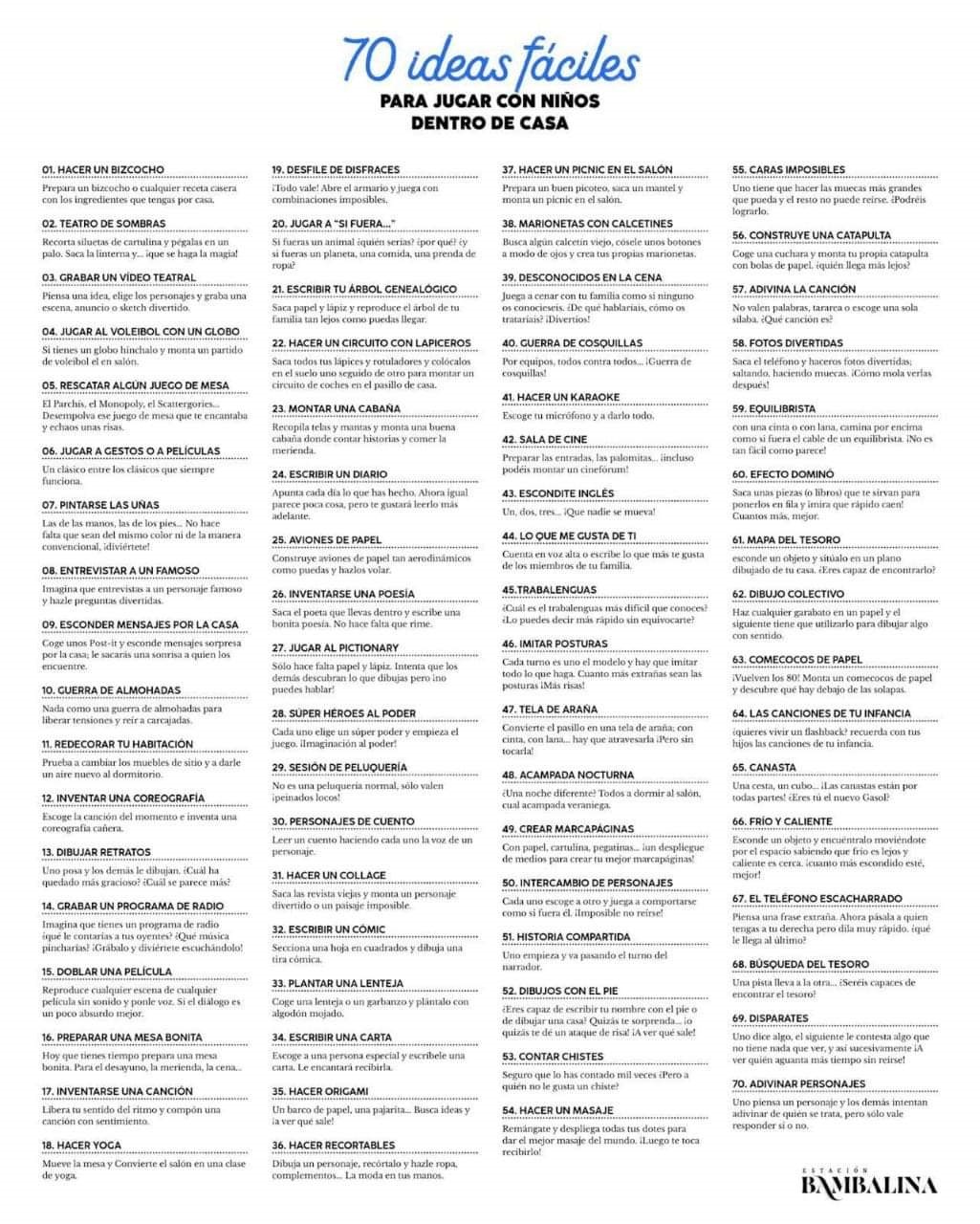 El ayuntamiento de Navaleno ha publicado, a través de su página web y Facebook, 70 ideas para jugar con niños dentro de casa, ideas que ahora con el estado de alarma y confinamiento son de gran utilidad.
