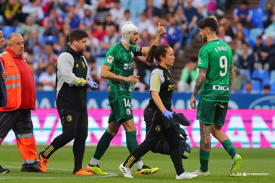 La Romareda se quedó muda tras un choque entre Mumo y Elgezabal que requirió la entrada de las asistencias. Tras más de siete minutos con el juego detenido, la continuidad heroica de Elgezabal y la sustitución de Mumo, volvió el fútbol al verde zaragozano.