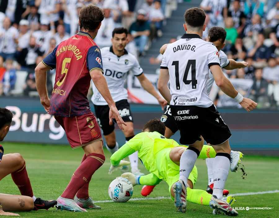 La última gran ocasión del partido también fue para los burgaleses, que se toparon con el larguero en el descuento en un cabezazo de Mollejo que remató tras una falta lateral. Sin embargo, el uno a uno iba a ser definitivo y ambos equipos se repartieron los puntos en un partido frenético y vibrante que mantiene al Burgos CF en la pelea por el Play-Off.