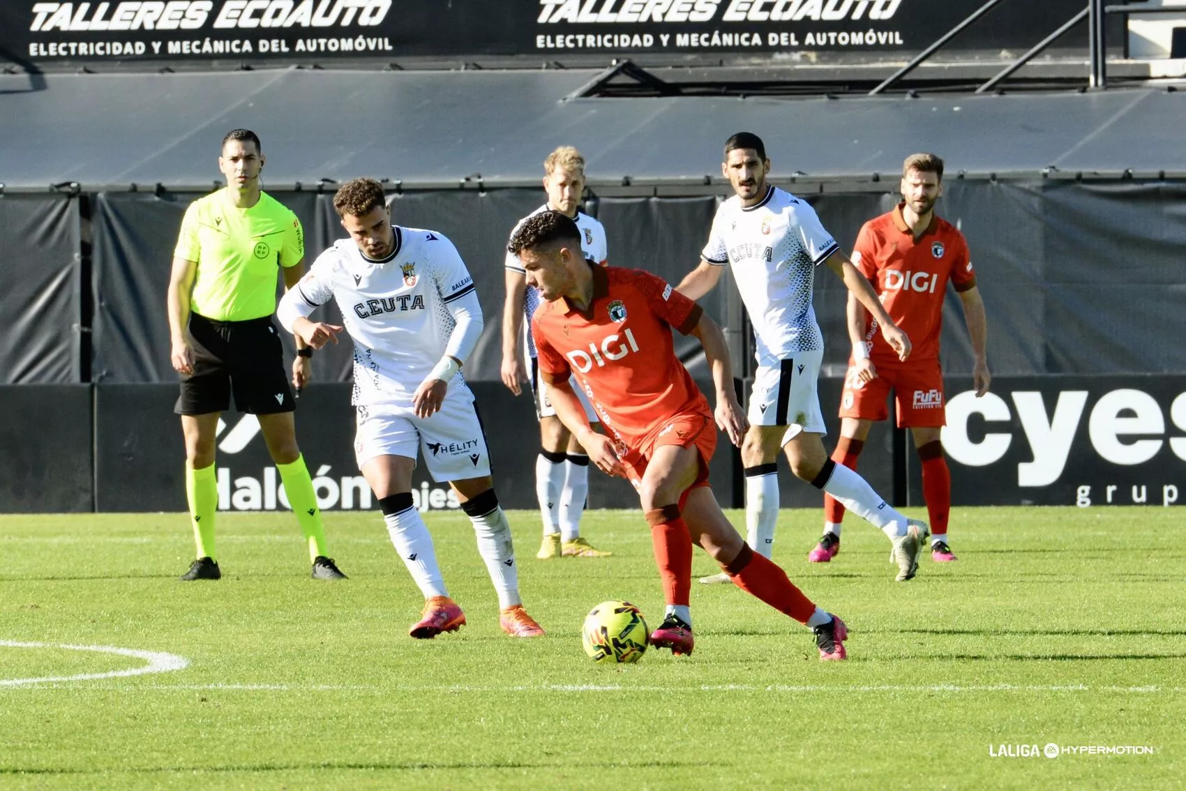 Incidencias: Partido de la Jornada 16 de la Segunda División Liga HyperMotion disputado en el Estadio Alfonso Murube de Ceuta ante 4.657 espectadores.