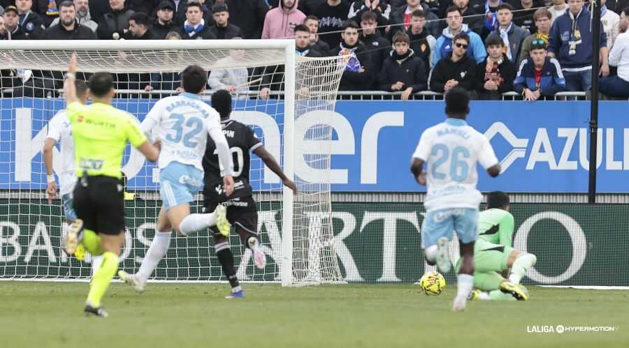 El punto de inflexión de la primera mitad se produjo en el minuto 28. Lizancos ganó la banda derecha, y dejó el balón a Curro Sánchez, quien puso el balón con música en el centro del área. Appin remató y encontró portería, pero tras unos minutos de incertidumbre, el colegiado acudió al VAR para anular el gol por fuera de juego posicional de Florian Miguel, quien también buscó el balón junto a su compatriota.
