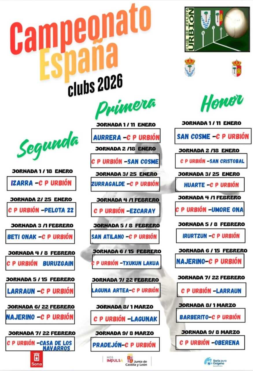 Por su parte, el CP Urbión disputa esta misma tarde, la primera jornada en División de Honor viajando a Logroño, donde se enfrentará al CP San Cosme, a partir de las 18:00 horas, en el frontón Adarraga.