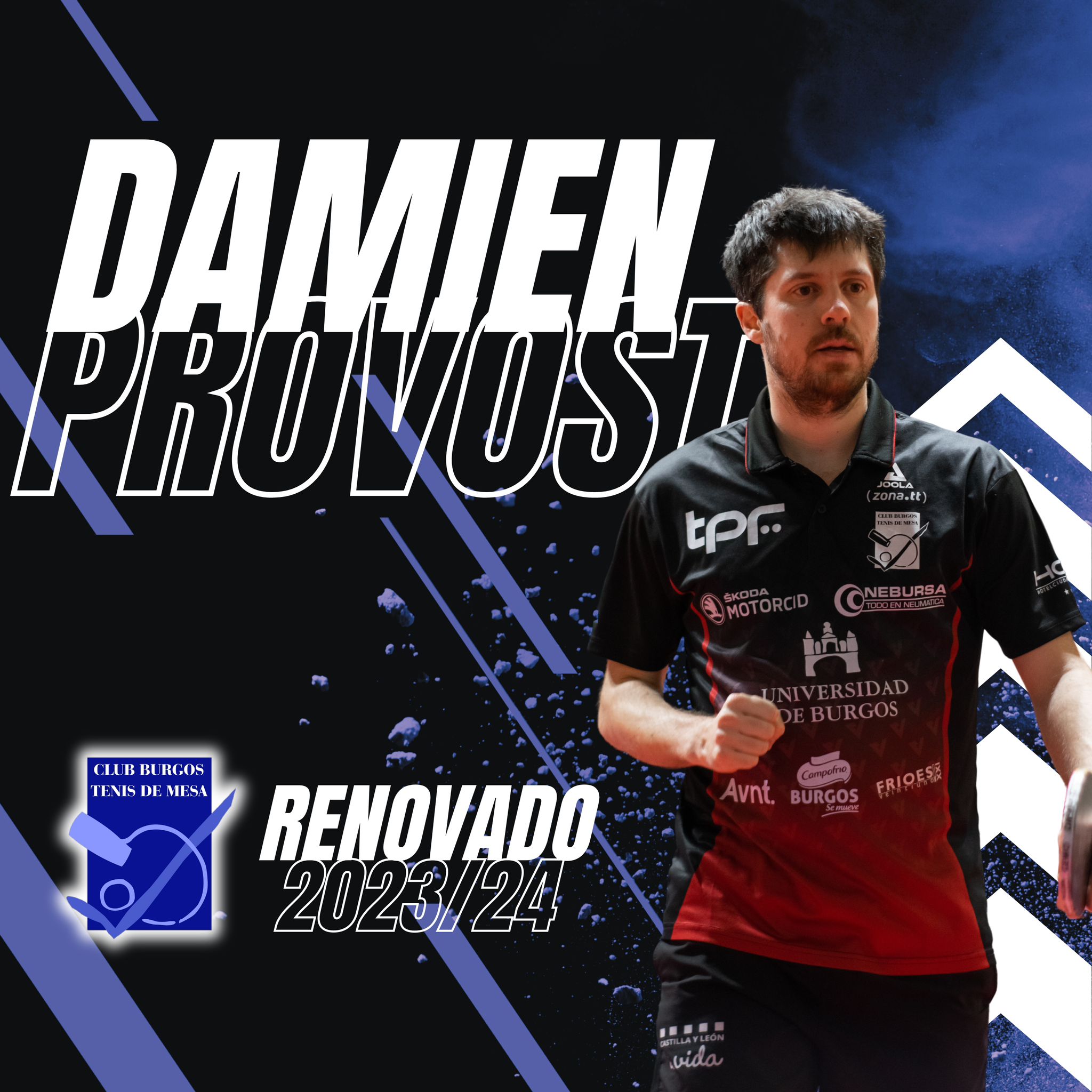 Los números del jugador en esta temporada que hemos cerrado, han sido, simplemente extraordinarios. Un balance de 32 victorias y 5 derrotas en liga ( 86% ), e invicto en todos los partidos disputados en la Copa del Rey, han hecho de Provost, un jugador muy apetecible para los equipos punteros de nuestro país. Arteal, subcampeón de liga, Borges, vigente campeón de Copa, e incluso Leka Enea de Irún, han realizado suculentas ofertas al jugador, que afortunadamente para el UBU TPF, ha rechazado, optando por la continuidad del proyecto, a pesar, de una menor cuantía económica. Provost está encantado de la familia del tenis de mesa burgalés, " aquí me siento como en casa, y quiero intentar con el potencial de Daniel Berzosa, conseguir un título para Burgos ", algo que es complicado, pero si que cada vez se ve más posible para el conjunto de nuestra ciudad.