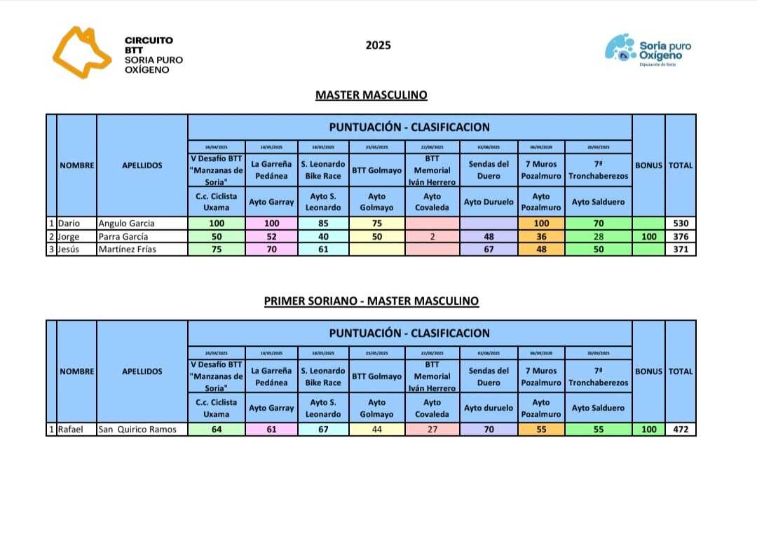 La Diputación Provincial de Soria ha promovido unos circuitos provinciales de BTT y TRAIL RUNNING, denominados “Soria puro oxígeno BTT” y “Soria puro oxígeno Trail” entre los organizadores de las distintas pruebas de BTT y TRIL RUNNING que se celebran anualmente en nuestra provincia.