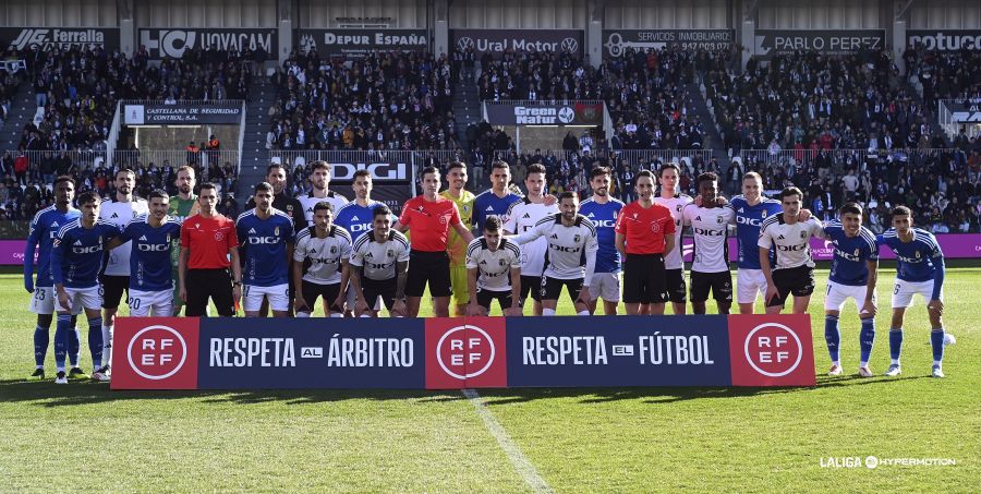 Real Oviedo: Aarón; Nacho Vidal, David Costas, Dani Calvo, Pomares; Seoane (Luengo, minuto 70), César de la Hoz (Sibo, minuto 46), Colombatto; Hassan (Sebas Moyano, minuto 46), Alemao (Paraschiv, minuto 87) e Ilyas Chaira (Portillo, minuto, 78).