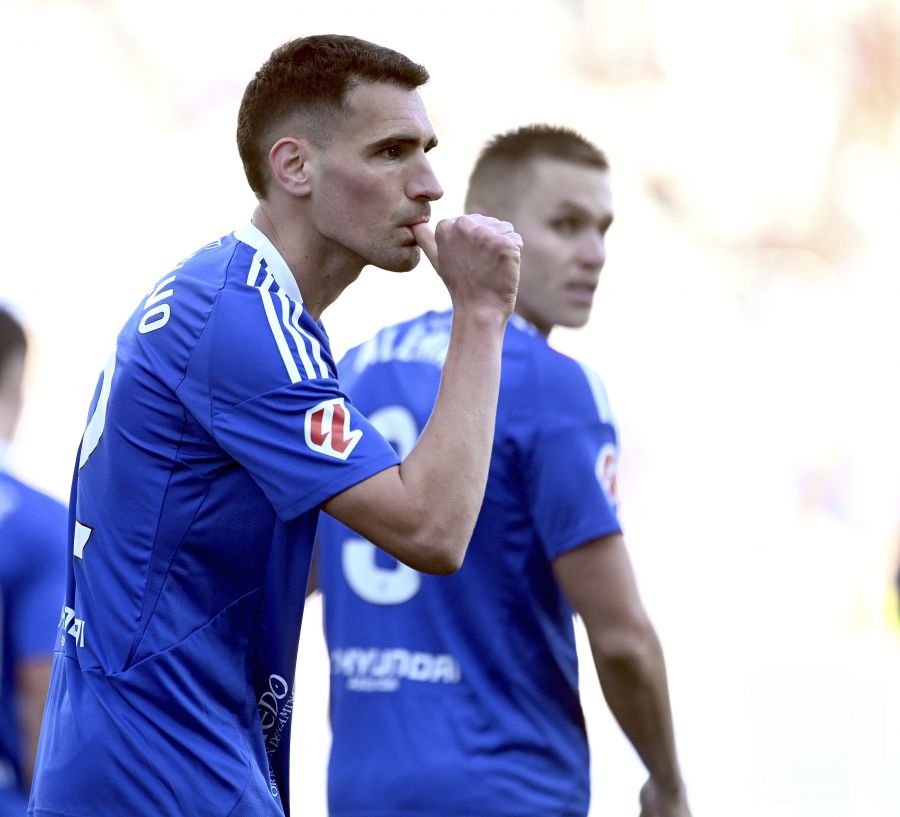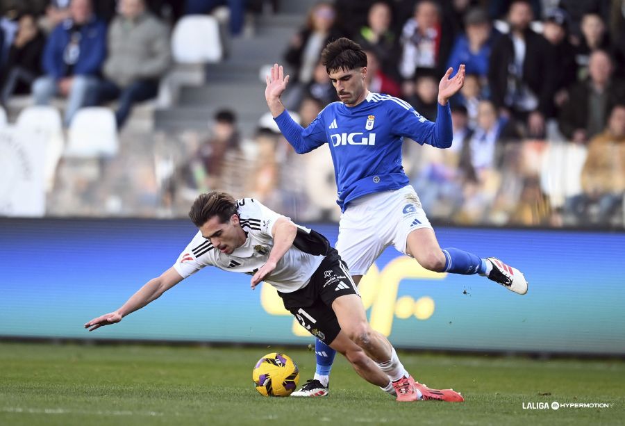 El conjunto burgalés seguía dominando el encuentro, pero el Real Oviedo empezó a soltarse más con balón y, cuando apenas quedaban cinco minutos para el descanso, los carballones consiguieron empatar en una jugada aislada gracias a un cabezazo de Alemao.