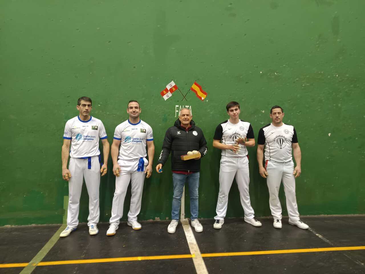 En Covaleda, primeramente se jugó un partido entre jugadores de la Escuela de Pelota, donde Marc y Rubén se impusieron a Gonzalo y Marcelo (22-17). Seguidamente comenzó el enfrentamiento de Segunda Categoría correspondiente a la 2ª jornada del 25 de enero, con victoria para el equipo pinariego.