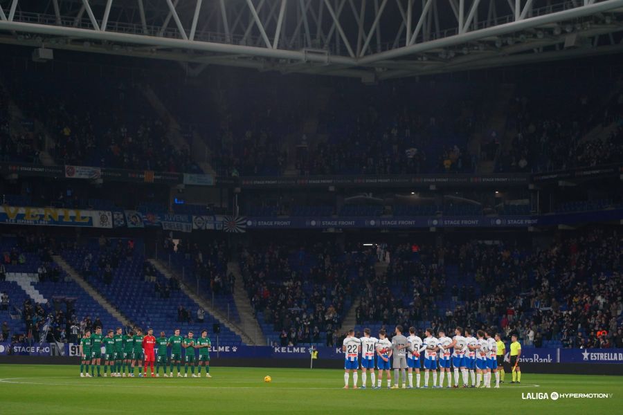 Incidencias: Partido de la Jornada 21.ª de la Segunda División Liga HyperMotion disputada en el Estadio Cornellá El Prat ante 13.474 espectadores.