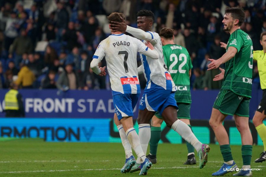 RCD Espanyol: Pacheco; El Hilali (Óscar Gil, minuto 82), Sergi Gómez, Calero, Brian Oliván (Ramón Ramos, minuto 82); Edu Expósito, Aguado, Keidi Baré (Keita Baldé, minuto 59), Puado; Pere Milla y Braitwhite.