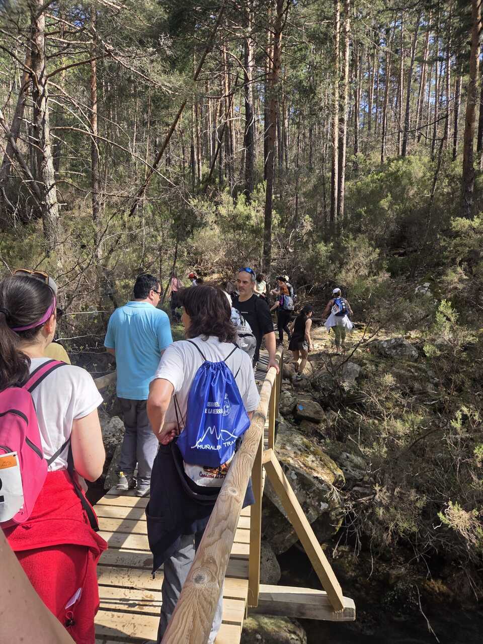 El recorrido permitió descubrir algunos de los parajes más representativos de la zona: extensos pinares de pino silvestre, imponentes formaciones rocosas y senderos frondosos junto al río Zumel. Uno de los momentos más destacados ha sido la visita a Peña El Vaso, ya en el término municipal de Quintanar de la Sierra, enclave de gran valor paisajístico.
