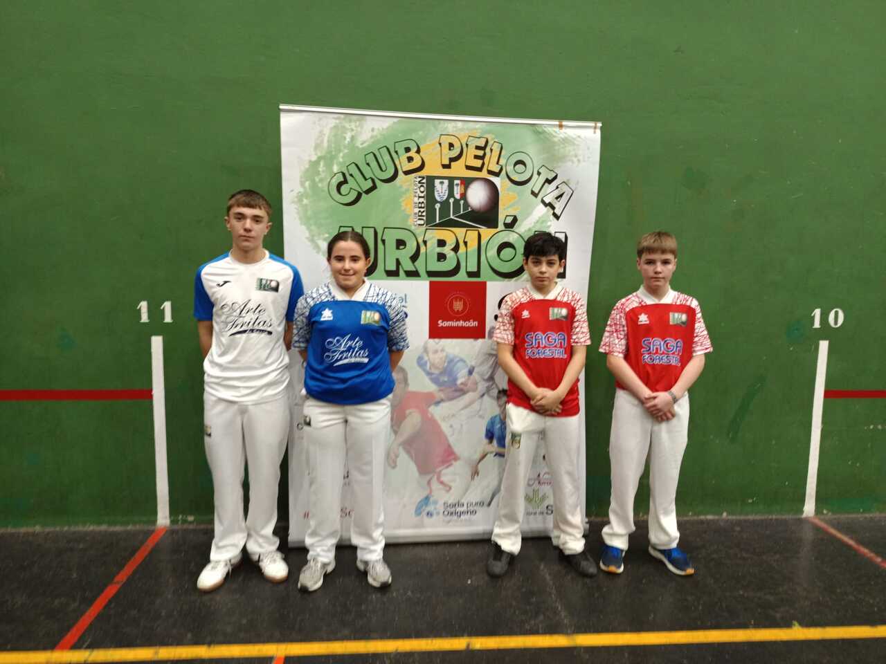 Se comenzó con tres partidos protagonizados por jugadores de la Escuela de Pelota, con los siguientes resultados: