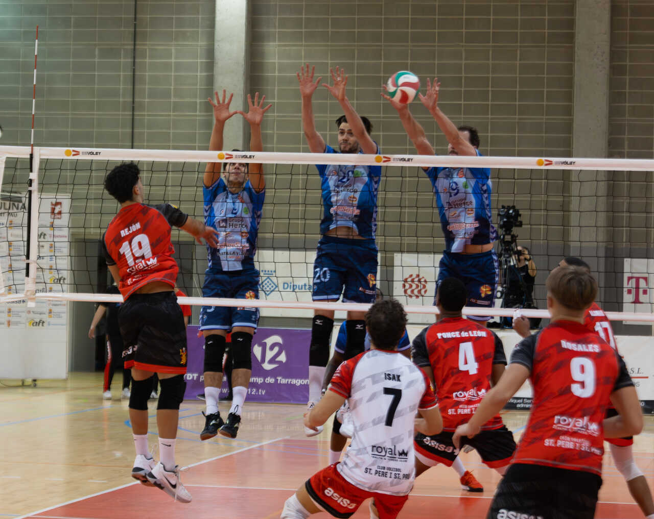 Los de Alberto Toribio sufrieron en la primera manga, al tener que levantar un 10-6 para ganar 23-25. Los dos siguientes sets, tras un inicio igualado, se han terminando decantando para los celestes por 18-25 y 22-25. En Tarragona juega, a sus 45 años de edad, uno de los iconos del voleibol español, Julián García Torres, cuyo bloqueo ante Rusia le dio a España el Europeo de 2007, el éxito más importante. Por los sorianos, el receptor sueco Lindberg ha hecho 13 puntos y el opuesto colombiano Moreno, 10. Siguen el central Mimoun con 9 y el otro receptor, Hoyos, con 7, por 5 de Doménech y tres del colocador Lorente, uno de saque, otro de ataque y otro de bloqueo. Masià ha jugado de líbero y también han disputado puntos Moisés Rodrigo, Castella, Kalstad y Montero.