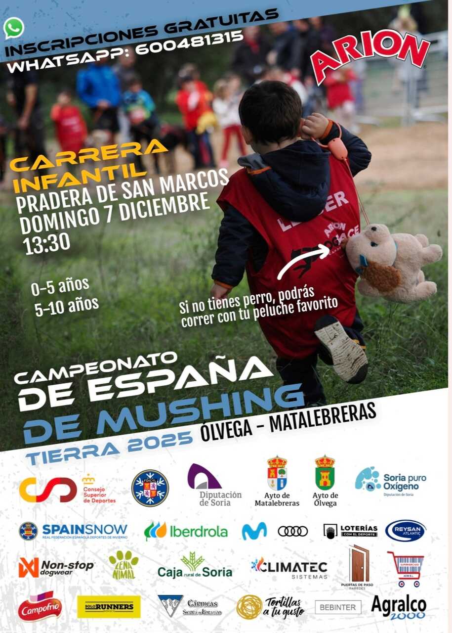 El domingo, a partir de las 13:30 horas, se celebrará una competición infantil, en la que los niños y niñas de 0 a 10 años podrán participar corriendo junto a sus perros o en su defecto sus peluches en un pequeño circuito de 200 metros. Las inscripciones pueden realizarse a través del canal de WhatsApp del Ayuntamiento de Ólvega.