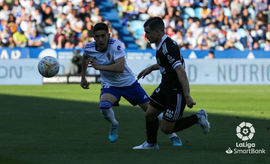 Las mejores llegadas eran visitantes, Álvaro Rodríguez dispuso de una muy buena ocasión para marcar con un recorte en la frontal, habilitándose posición de disparo, y disparar muy cerca del larguero. Bermejo respondió probando desde unos 35 metros, pero su disparo salió un par de metros por encima de la madera. La madera, aliada del Real Zaragoza en el partido de hoy, volvió a evitar el gol blanquinegro en un gran remate de cabeza de Aitor Córdoba a la salida de un córner botado por Mumo. A punto de cumplirse el tiempo reglamentario, Petrovic pudo romper la igualada con un disparo trastabillado que llegó manso a Alfonso Herrero. La acción dio oxigeno al Real Zaragoza, que volvió a cargar un minuto después, en botas de Jair Jr. con un disparo raso demasiado desviado a la derecha de la portería. Mumo tuvo la última del partido, en la que intentó sorprender sin fortuna con un saque de falta directo que se perdió por la línea de fondo.