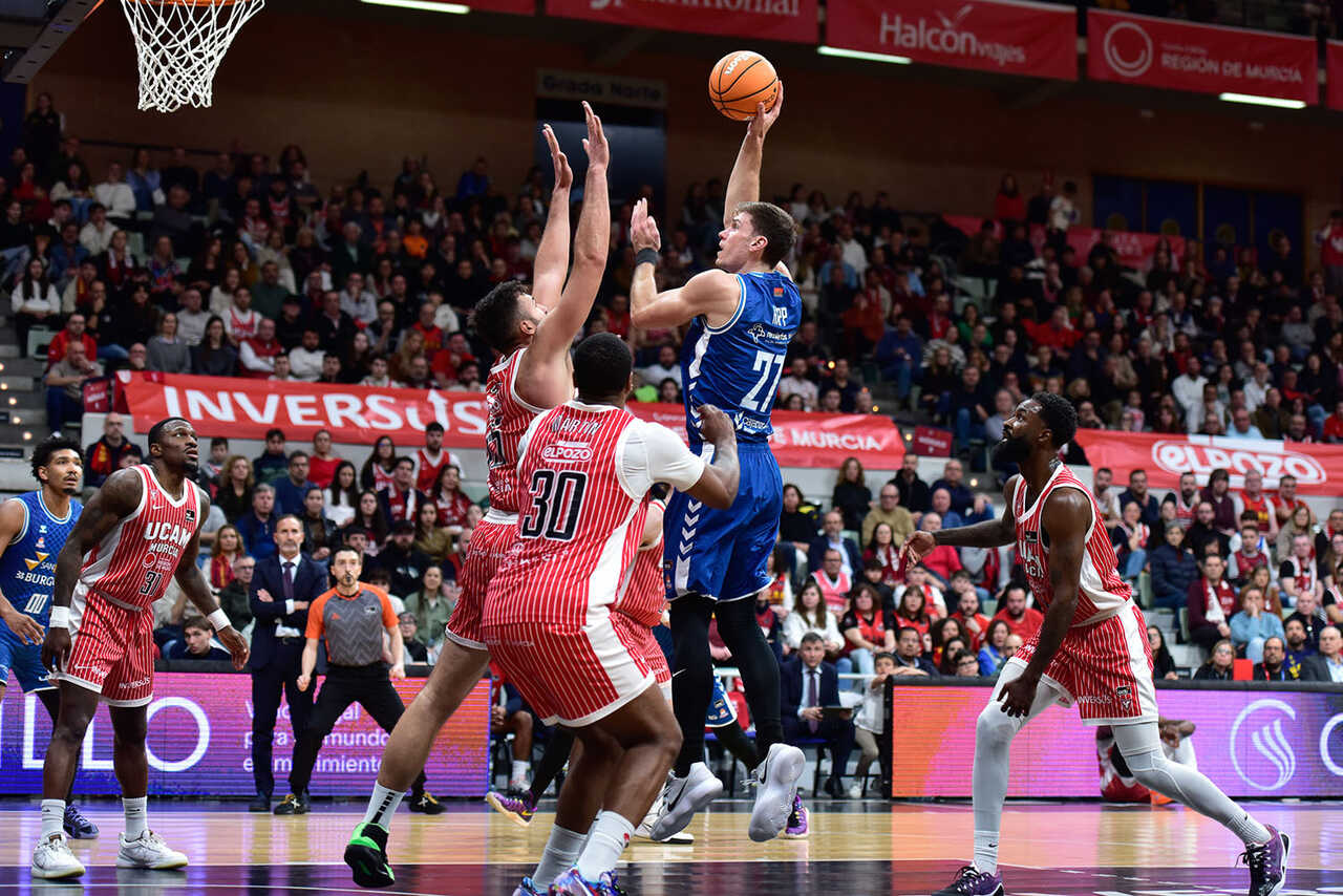 El Recoletas Salud San Pablo Burgos no pudo superar a UCAM Murcia a domicilio, en un partido de alta complejidad en el que los de Porfi Fisac supieron plantear batalla. Pese a que los locales dominaron el electrónico en la totalidad del encuentro, los visitantes consiguieron aproximarse en el marcador con buenos parciales que mostraron una combativa versión lejos del Coliseum. En el último cuarto, los murcianos volvieron a despegarse en el electrónico, en un periodo donde terminaron de romper el resultado a su favor.