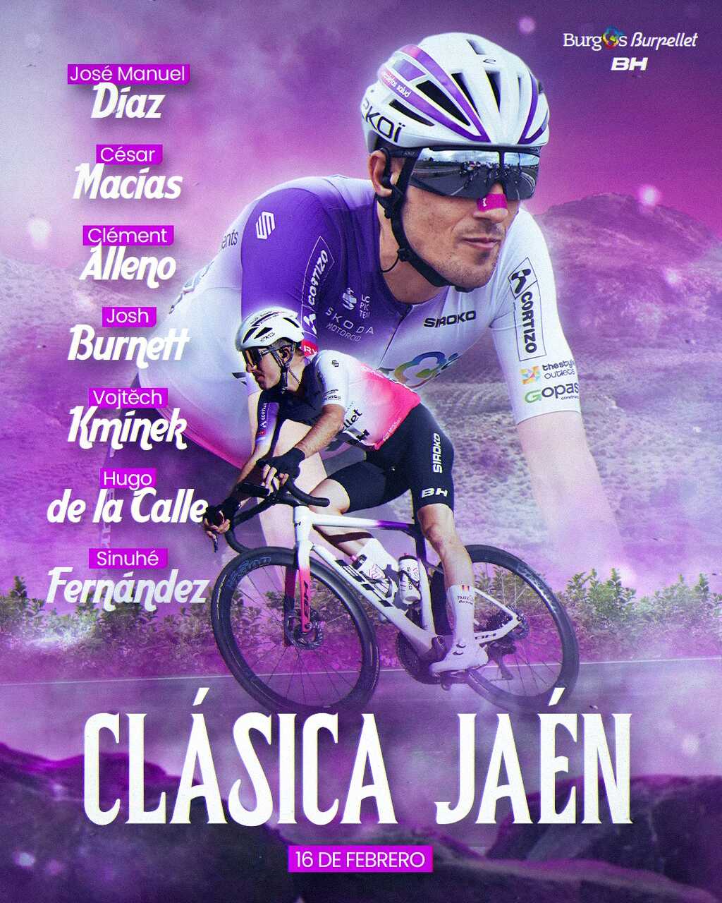El circuito final mantiene los exigentes tramos de Vandelvira, Mar de Olivos, Juancaballo y Santa Eulalia, aunque algunos de ellos han visto suprimido su segundo paso. Además, el sector de Guadalupe ha sido reemplazado por el de San Bartolomé, que se estrena en esta ocasión Encabeza la alineación del Burgos Burpellet BH el jienense José Manuel Díaz, que siempre rinde a buen nivel en la carrera de su tierra. También esperan destacar ciclistas todoterreno como Hugo de la Calle, Clément Alleno o Josh Burnett. Completan el siete morado Sinuhé Fernández, César Macías y Vojtech Kmínek.