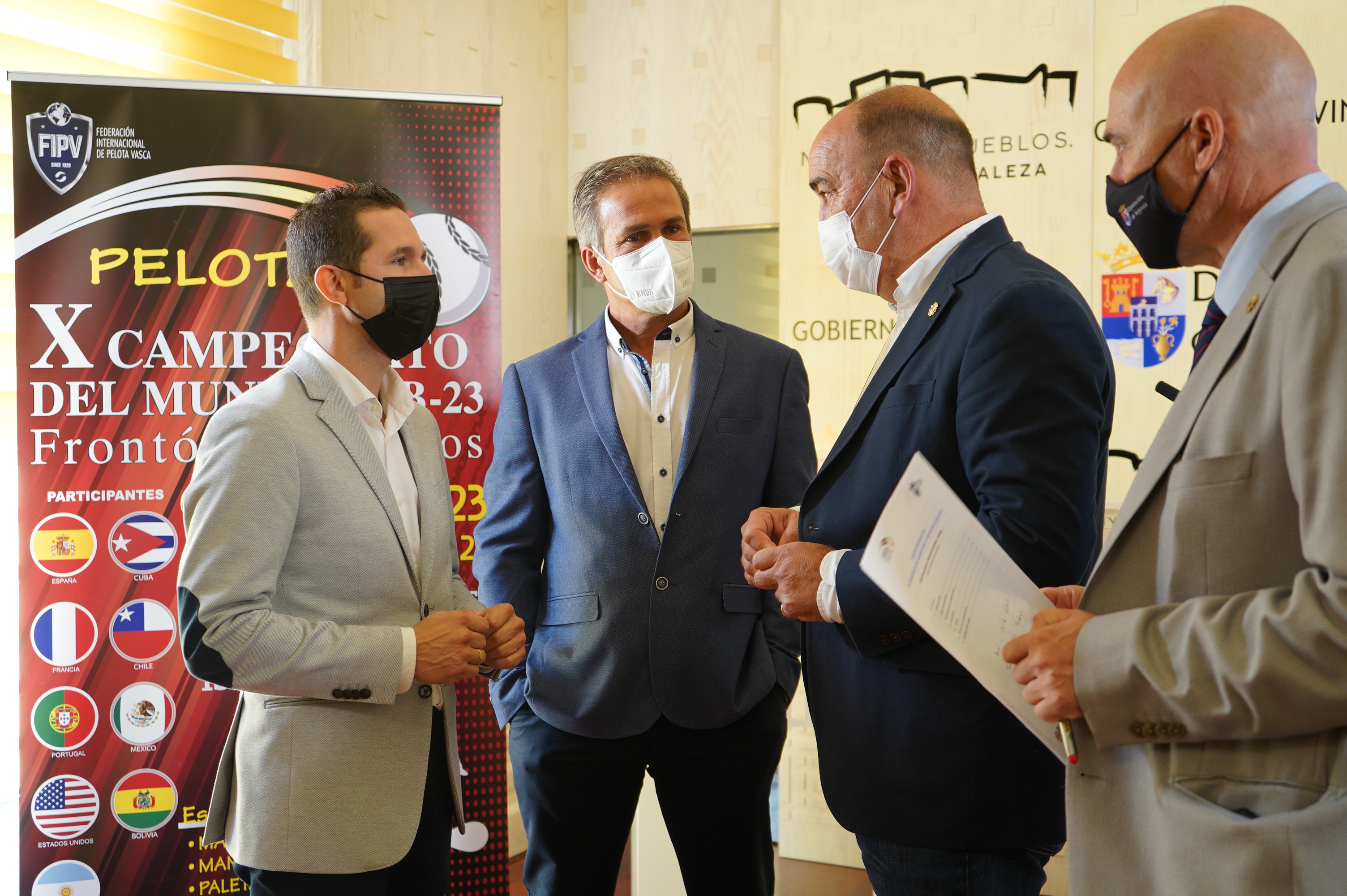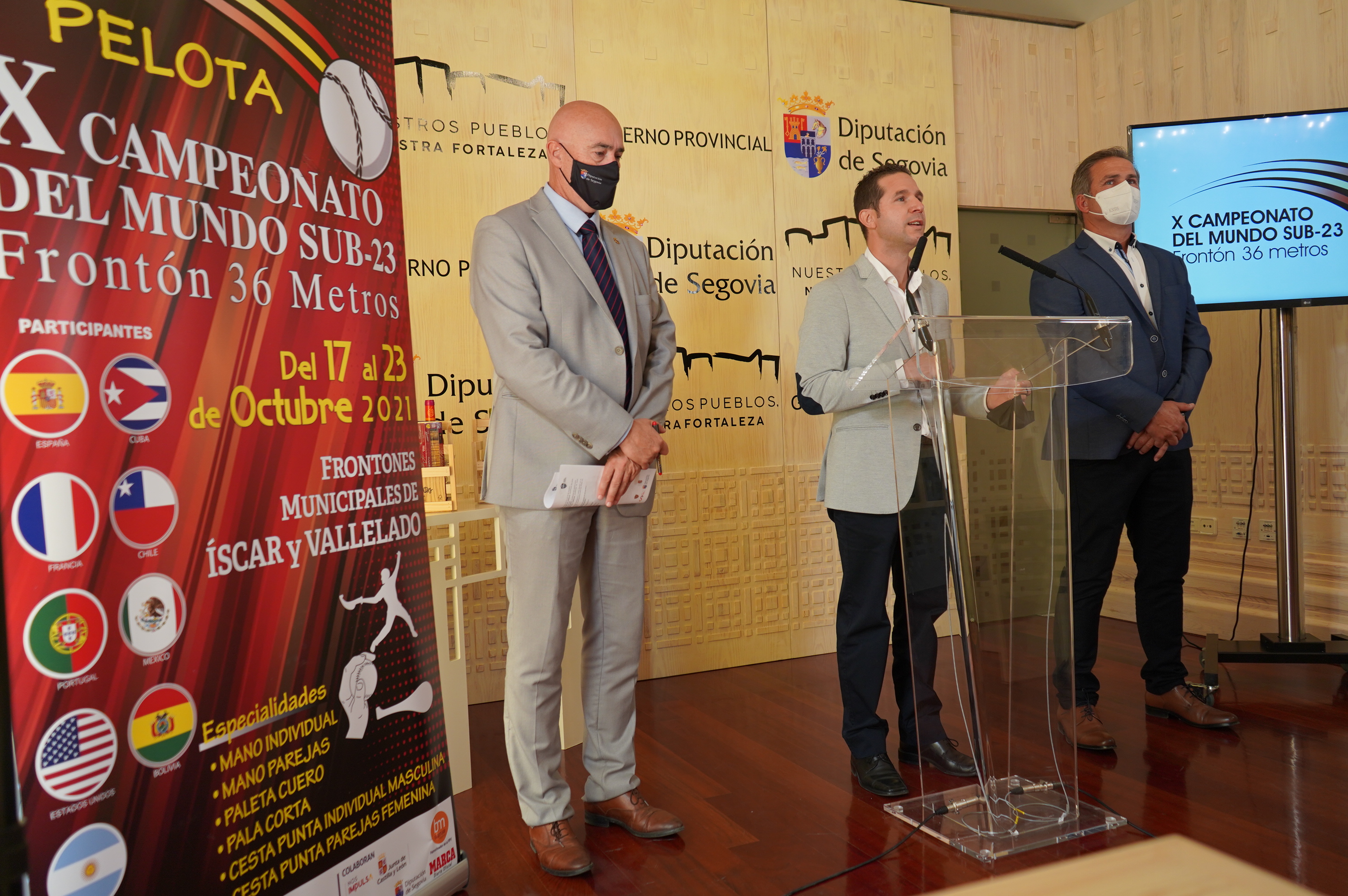 La Diputación de Segovia ha acogido la presentación del X Campeonato del Mundo sub 23 de Pelota en frontón de 36 metros con la presencia del diputado provincial de deportes de la Diputación de Segovia, Óscar Moral el alcalde de Vallelado, Ángel del Ser y el presidente de la Federación de Pelota de Castilla y León, Roberto Fernández.