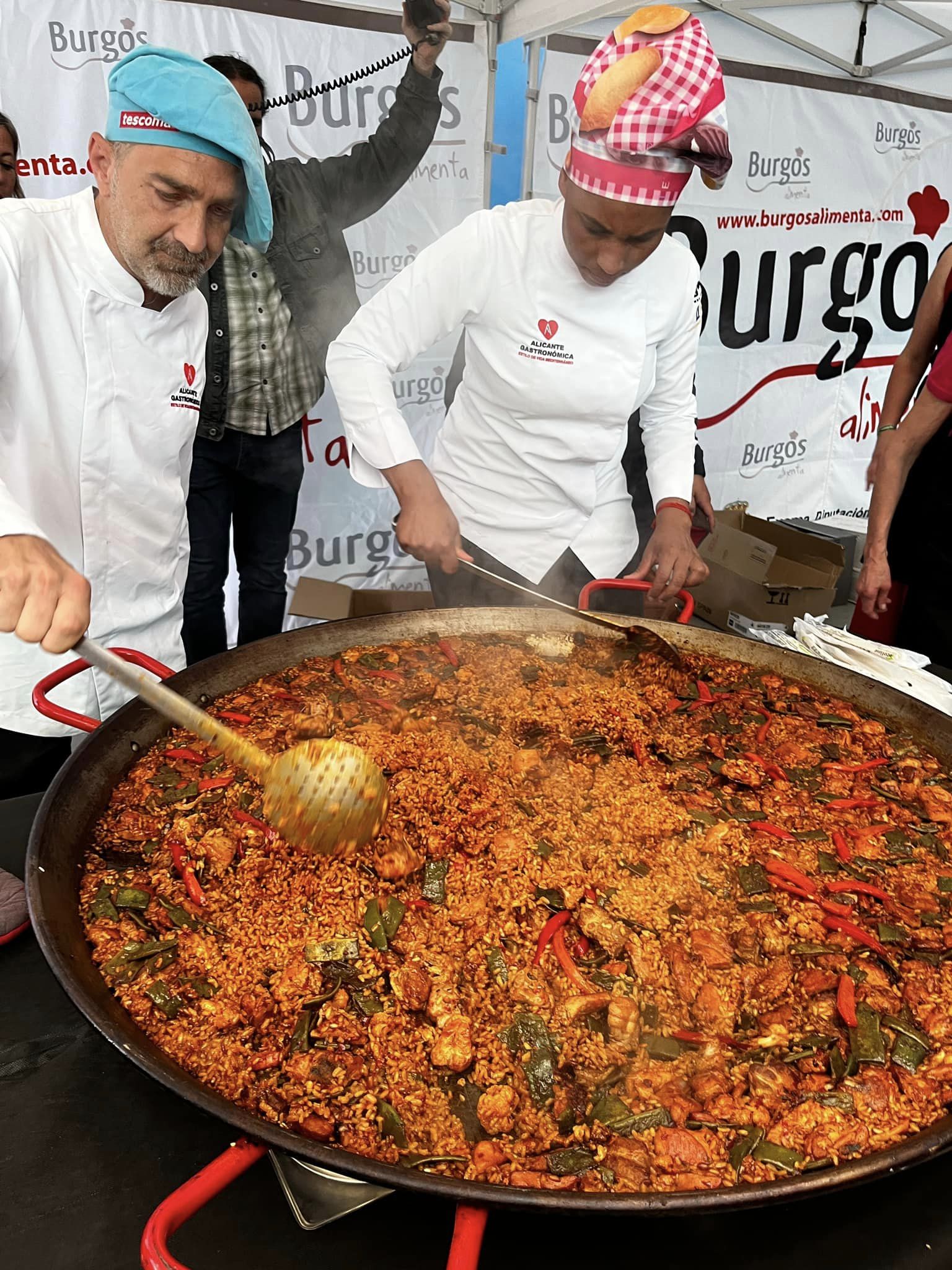 Durante la jornada el público pudo disfrutar de una degustación popular de tortilla de patatas, Morcilla de Burgos IGP, guiso de patata de Burgos y paella alicantina elaborada por la delegación desplazada desde Alicante regados por vinos de DO Arlanza y DO Ribera del Duero.