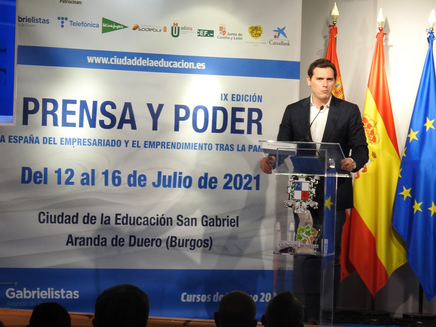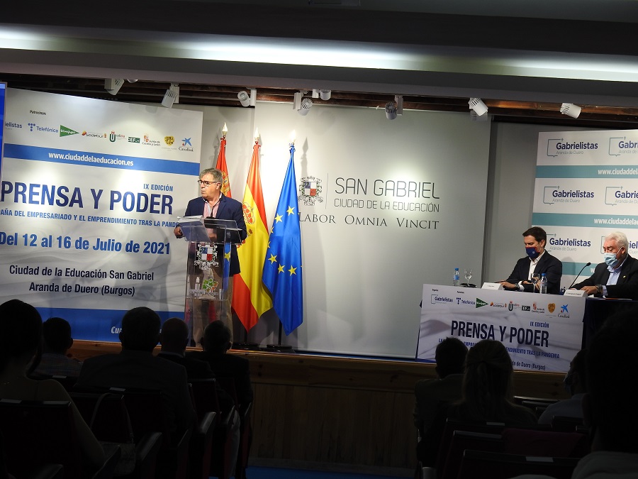 “Necesidad de una nación con empresas”. Con esta idea ha comenzado Albert Rivera su ponencia en la novena edición del curso de verano ‘Prensa y Poder’, dirigido por Graciano Palomo, que ha arrancado durante la mañana de lunes 12 de julio en el Colegio San Gabriel de La Aguilera, junto a Aranda de Duero.