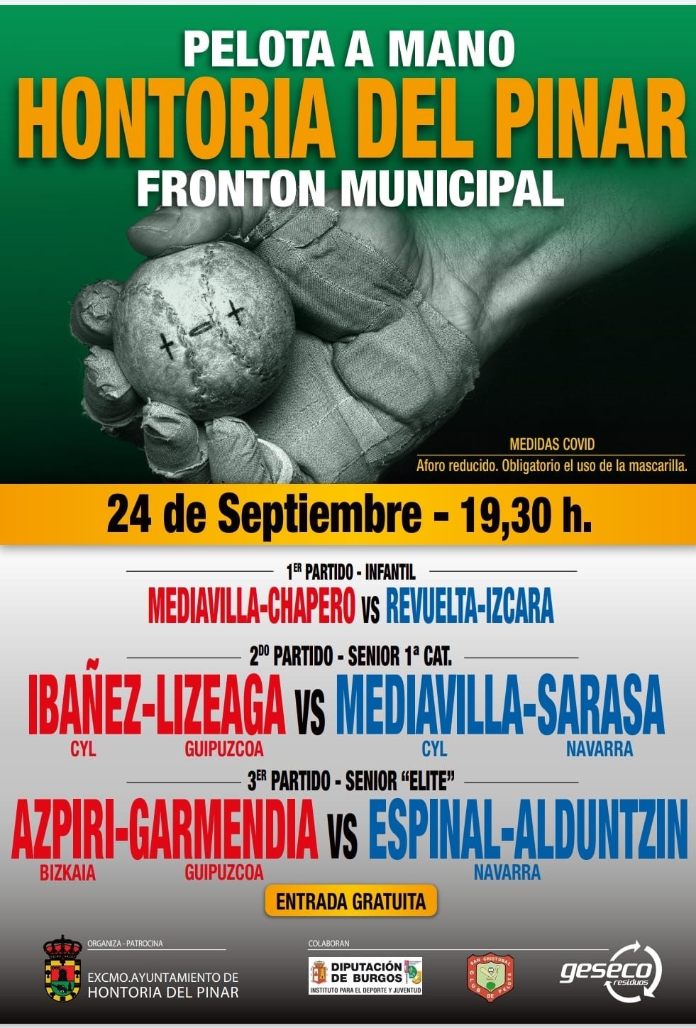 19:30h partidos de pelota a mano en el Polideportivo Municipal a cargo del Club de Pelota San Cristóbal.