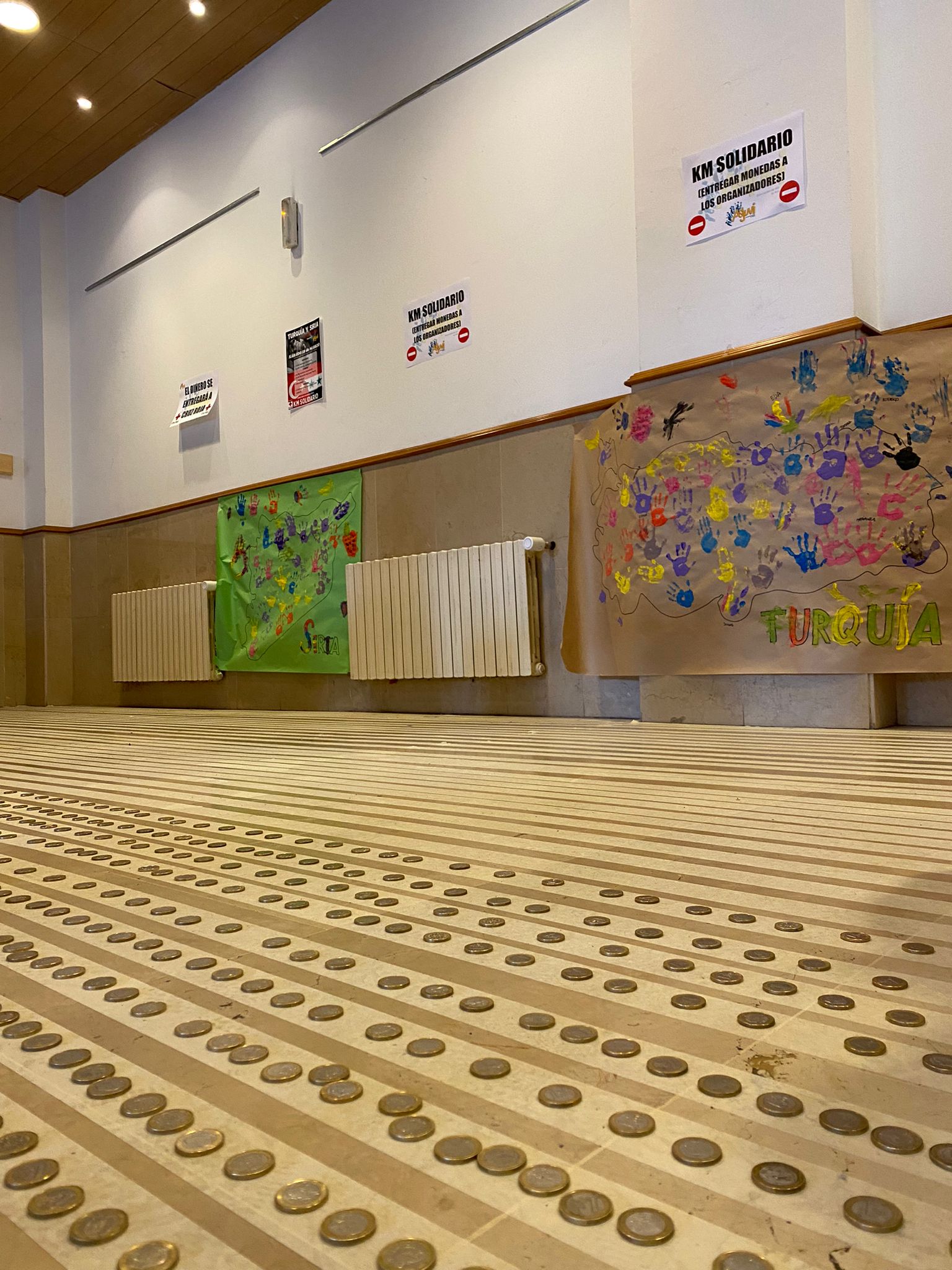 La iniciativa buscaba completar un trayecto de hasta un kilómetro con monedas de un euro, una propuesta exitosa que se llevó a cabo en 2010, donde en aquella ocasión recaudaron cerca de 4.000 euros para los afectados del terremoto de Haití. En esta ocasión la recaudación ha ascendido a 1.845 euros que ya se han enviado a través de Cruz Roja.