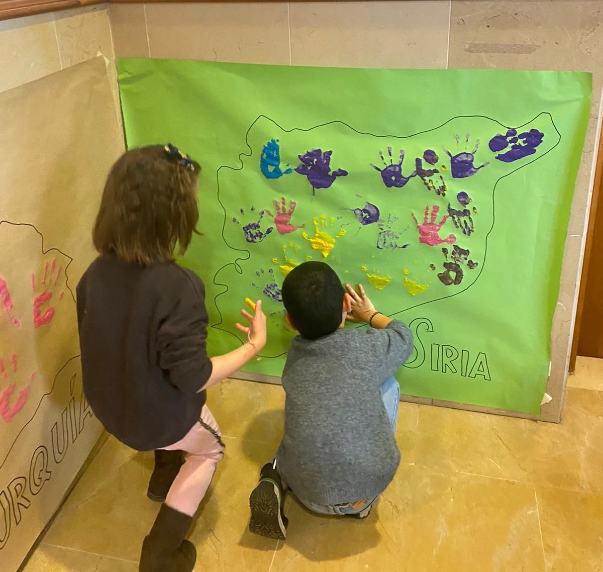 También se pintó un mural con las manos de los niños con las siluetas de Siria y Turquía con el fin de que los más pequeños entendieran el fin por el que estaban allí y hacer una función de concienciación.