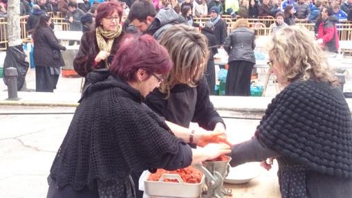 Los distintos pasos del acto se fueron relatando por parte de miembros de La Caldereta, asociación que empezó recuperando esta práctica antes habitual en las casa, para convertirlo en espectáculo público.