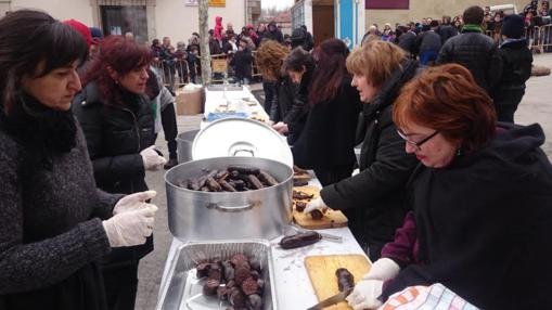Continuó la fiesta con el sacrificio del gorrino, mientras en las distintas cazuelas se terminaban de preparar las viandas que decenas de personas pudieron probar en la plaza del Ayuntamiento.