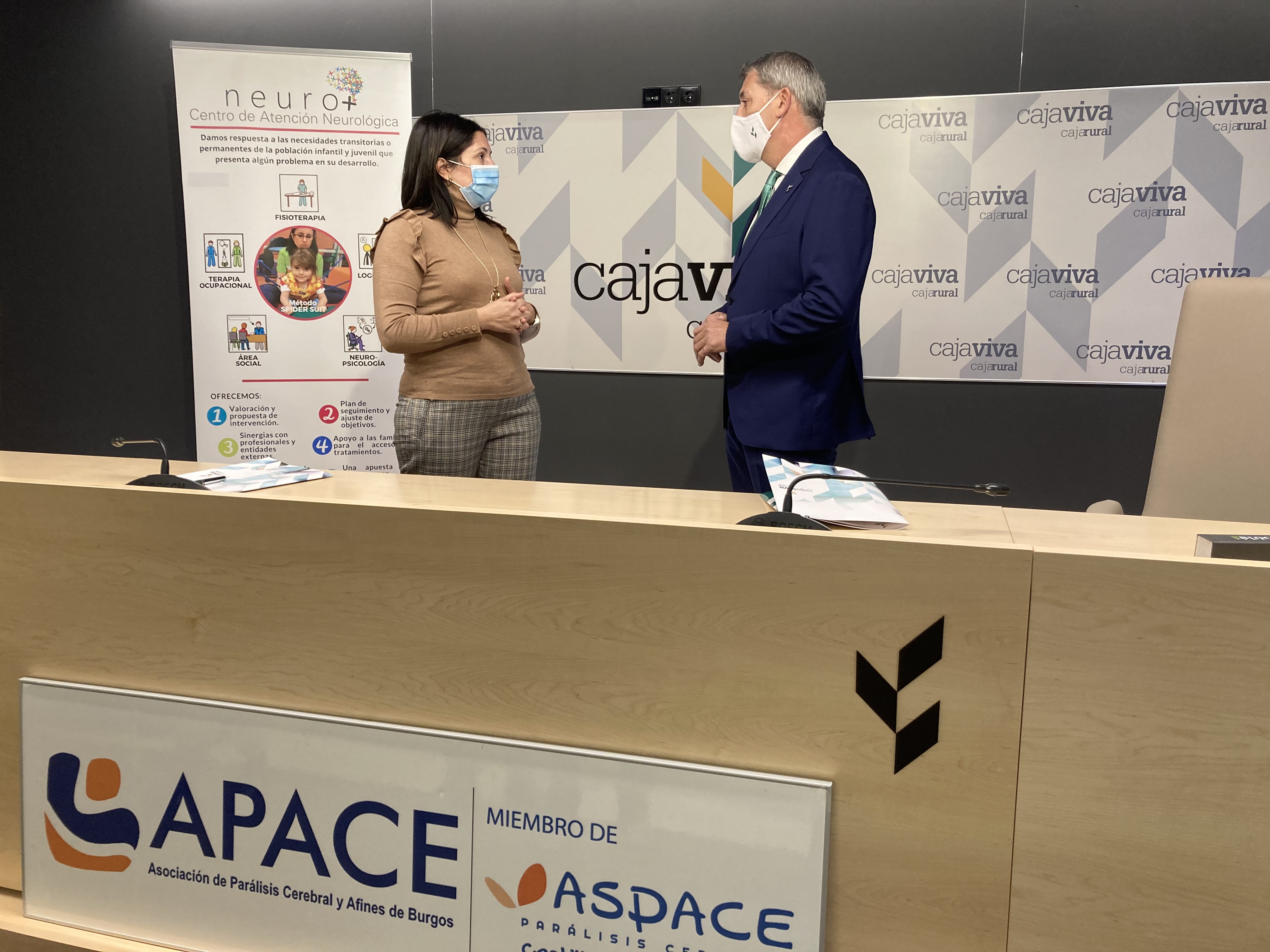 Cajaviva Caja Rural entregó 6.400 euros a la Asociación de Parálisis Cerebral y Afines de Burgos, APACE, destinados a facilitar el desarrollo de diferentes programas que la asociación lleva a cabo entre sus usuarios, así como a cubrir necesidades de los centros asistenciales que APACE tiene en Burgos y Aranda de Duero. Con esta donación, Cajaviva Caja Rural contribuye a facilitar el buen funcionamiento y el trabajo que realiza en el día a día APACE con personas con parálisis cerebral que en estos momentos, debido a la situación derivada de la pandemia, son uno de los colectivos más vulnerables.