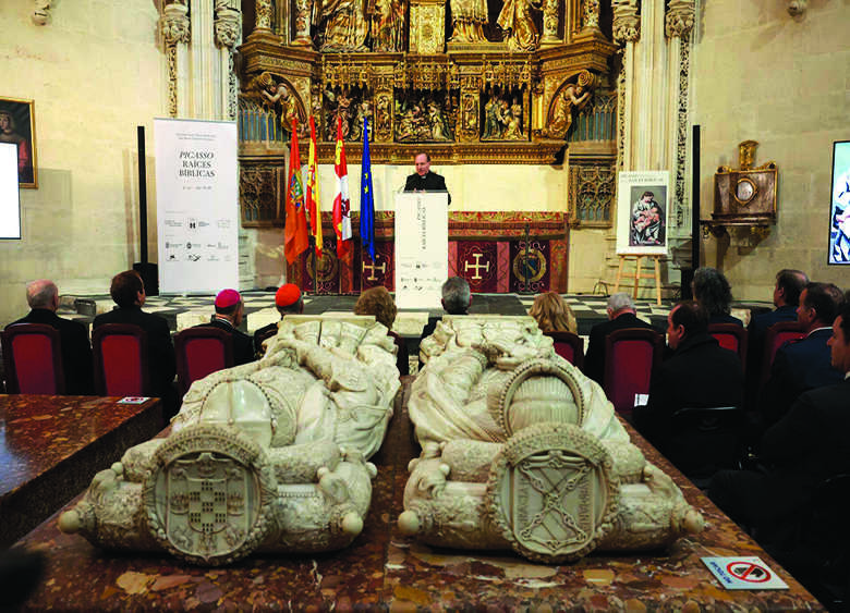 La sala Beato Valentín Palencia de la Catedral de Burgos acoge desde esta semana la exposición “Picasso. Raíces bíblicas”, una muestra inédita que reúne 44 obras de Pablo Picasso y que explora las influencias bíblicas y cristianas presentes en la producción del artista malagueño.La exposición fue inaugurada el pasado lunes en un acto presidido por Reina Sofía de España, en el que también participaron el cardenal José Tolentino de Mendonça, prefecto del Dicasterio para la Cultura y la Educación de la Santa Sede, y Bernard Ruiz-Picasso, nieto del pintor y presidente —junto a su esposa, Almine Rech— de la Fundación Almine y Bernard Ruiz-Picasso para el Arte (FABA). La iniciativa está organizada por la archidiócesis de Burgos, el Cabildo Metropolitano, la Fundación FABA y la Fundación Consulado del Mar de Burgos, con el patrocinio de diversas entidades.