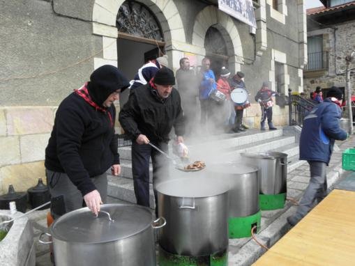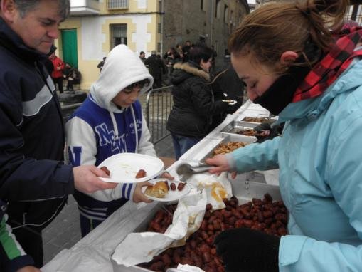 Ell sacrificio de la cochina de 120 kilos arrancó pasadas las 12,30 del mediodía, y continuó el evento con la degustación de los manjares del cerdo con chorizo, pancenta, costillas y morcilla para unas 250 personas. El frío, la nieve y el viento fueron protagonistas e impidieron disfrutar de un rato agradable en la degustación.
