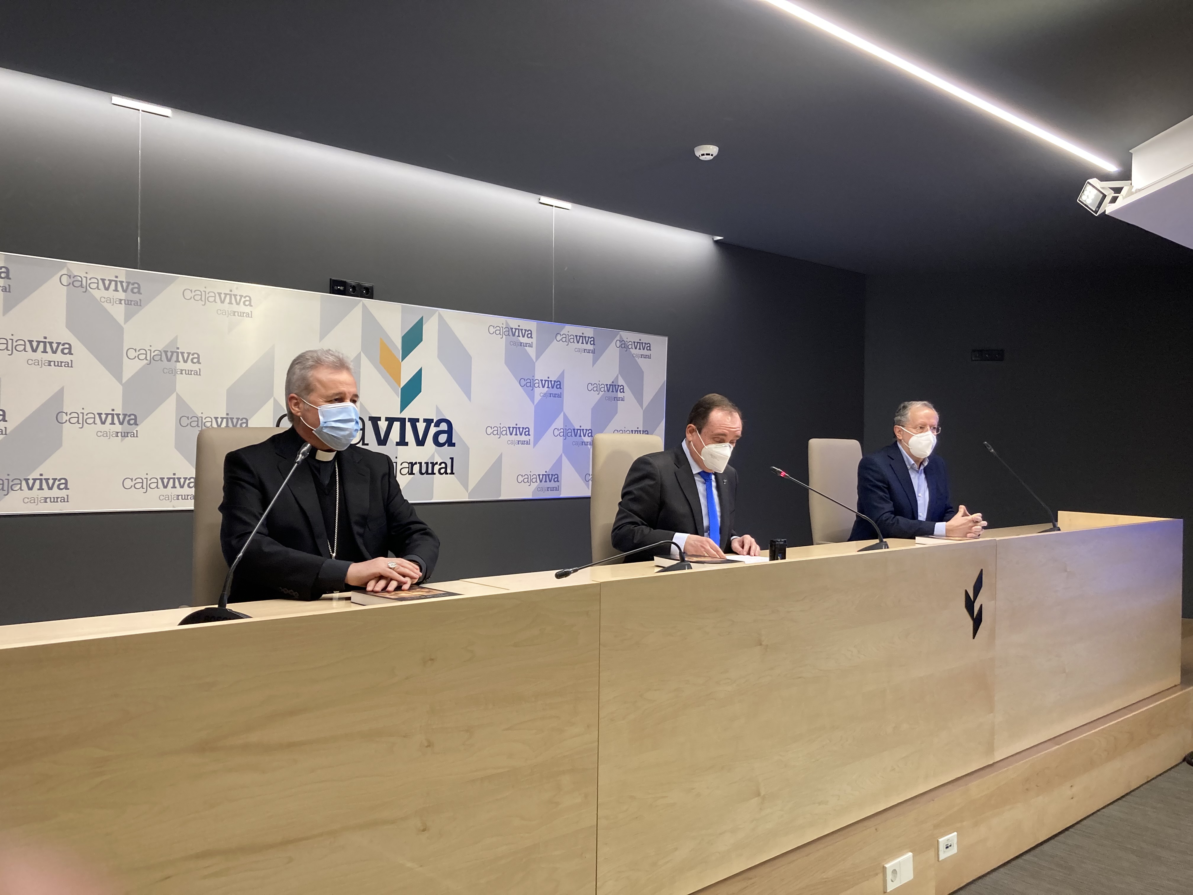 En el acto han estado presentes Ramón Sobremonte, director general de Cajaviva Caja Rural y apoderado de Fundación Caja Rural Burgos; Mario Iceta arzobispo de Burgos y Constantino de la Fuente coordinador del libro.
