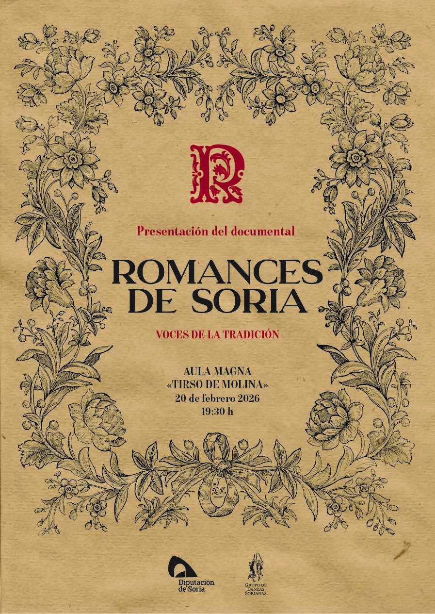 Este viernes, 20 de febrero, a las 19:30 horas, el Aula Magna Tirso de Molina acoge la presentación oficial del documental 'Romances de Soria: voces de la tradición', una producción impulsada por la Diputación Provincial de Soria junto al Grupo de Danzas Sorianas. La entrada es libre hasta completar el aforo.