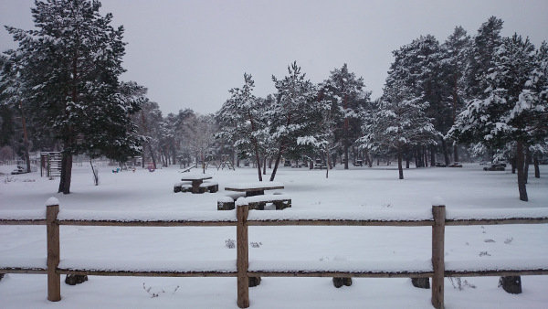 Todos los profesores han acudido al centro, según nos confirman desde el Instituto. La nieve se hace visible en el exterior de las instalaciones, y complica la circulación en carreteras de la comarca, hasta el punto de hacer algunas intransitables.