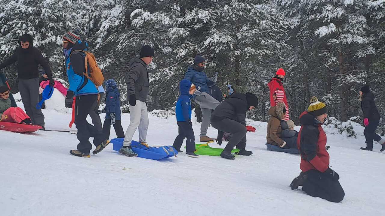 En la zona de los trineos, los más pequeños se lo pasaron a lo grande deslizándose por la pista, utilizando distintos medios para poder descender en el recorrido. Algunos mostraban su decepción por no estar en funcionamiento el remonte acristalado, que se ha adecuado en el último año.